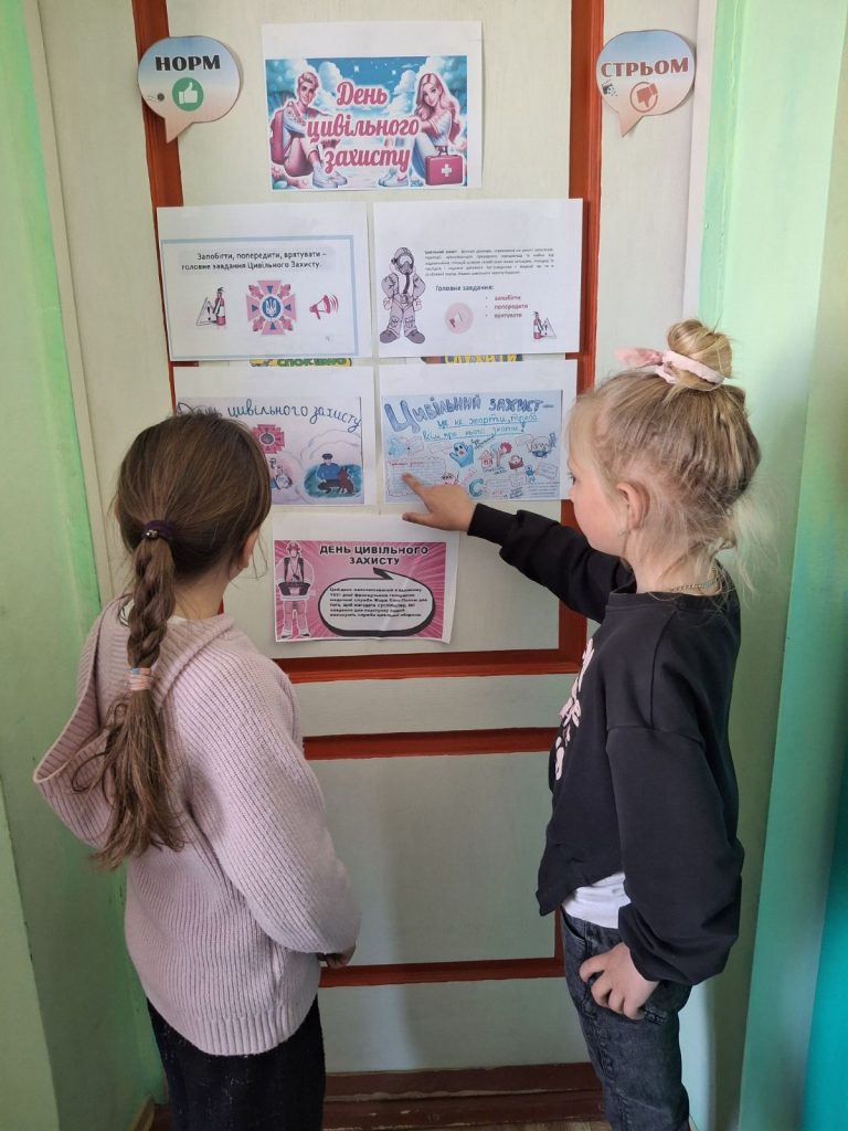 Творчою складовою заходів стало створення стінгазет на тему цивільного захисту, де учні відобразили правила безпечної поведінки, важливість уважності та відповідальності за власне життя і здоров’я.