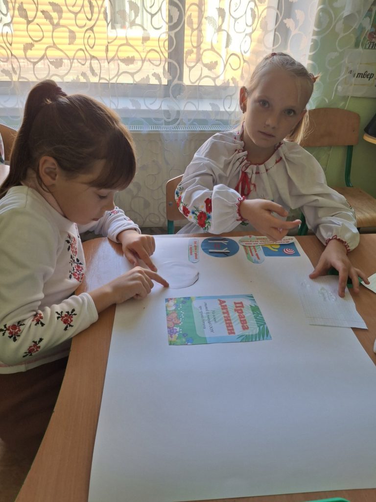 У групах школярі створювали яскраві колажі, добирали ілюстрації та гасла, що відображають їхнє розуміння справедливості, доброти й відповідальності. Роботи вийшли змістовними, барвистими та щирими — справжнім проявом дитячого бачення гармонійного світу, у якому права і обов’язки тісно пов’язані.