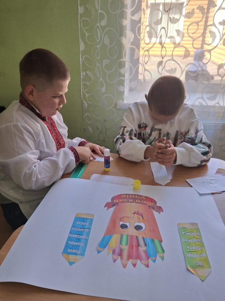 У групах школярі створювали яскраві колажі, добирали ілюстрації та гасла, що відображають їхнє розуміння справедливості, доброти й відповідальності. Роботи вийшли змістовними, барвистими та щирими — справжнім проявом дитячого бачення гармонійного світу, у якому права і обов’язки тісно пов’язані.