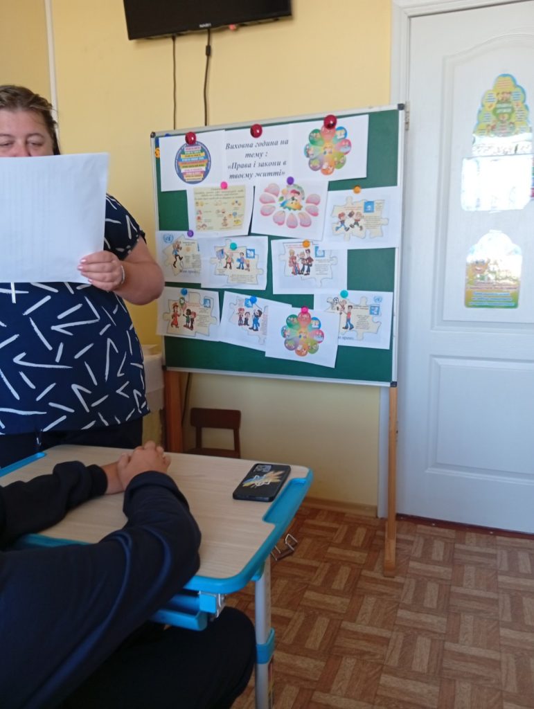 Учні разом з класним керівником обговорили значення прав і обов’язків кожної людини, дізналися про основні положення Конвенції ООН про права дитини, розглянули приклади із життя, де закони допомагають захищати людину.