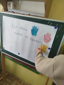 Символічна вправа “Ця рука ніколи не вдарить” допомогла учням задуматися над тим, як важливо створювати у класі атмосферу довіри, взаємоповаги та підтримки.
