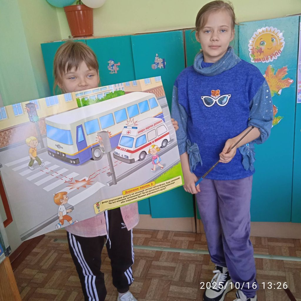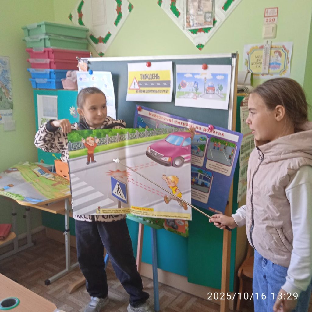 Протягом тижня учні взяли участь у низці пізнавальних і творчих заходів. Для першокласників проведено перегляд відео “Правила дорожнього руху – правила життя”, під час якого діти вчилися розпізнавати дорожні знаки та правильно переходити дорогу. Учні 2–3 класів створювали яскраві плакати “Мій шлях до школи”, а четвертокласники захоплено брали участь у грі-квесті “У країні Світлофорії”.