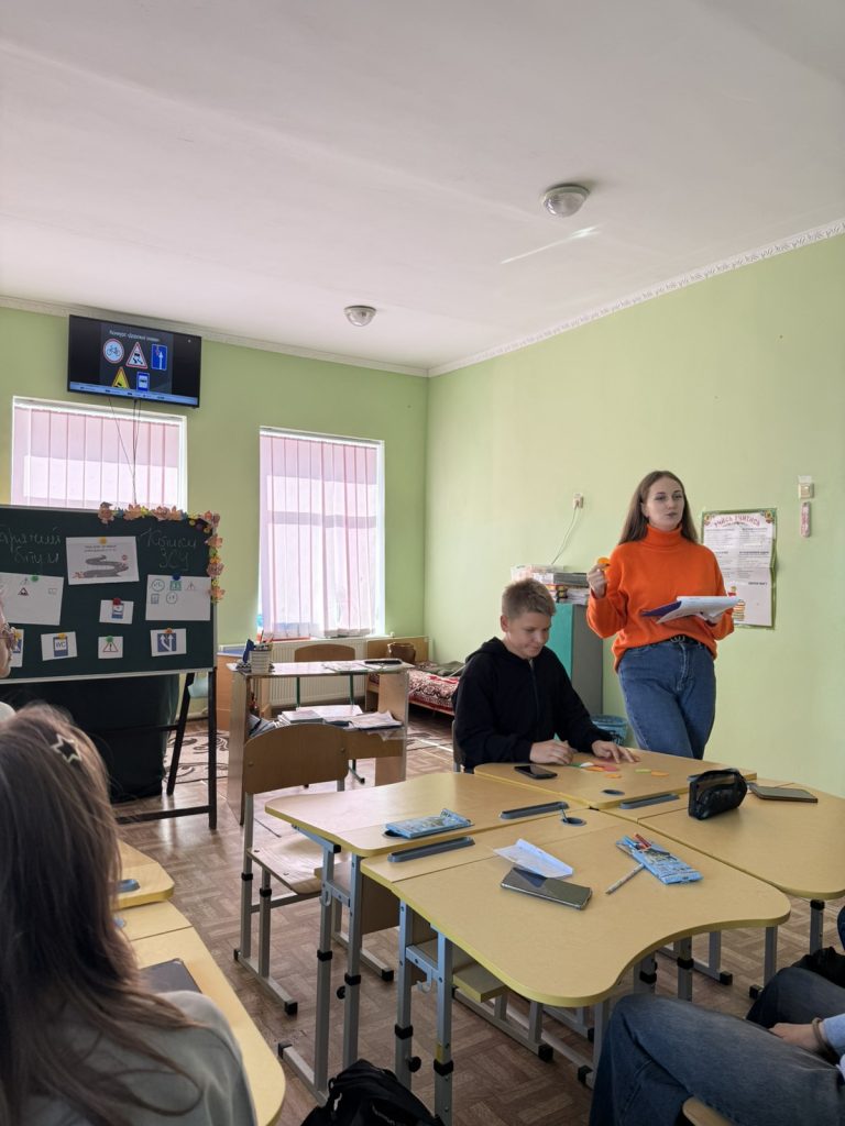 Серед учнів 5–7 класів діяла виставка малюнків “Світлофор нам всім моргає – шлях безпечний нам вказує”, де школярі через творчість висловили своє бачення безпечної поведінки на дорозі. Старшокласники (8–9 класи) продемонстрували свої знання під час брейн-рингу “Я – учасник дорожнього руху”.